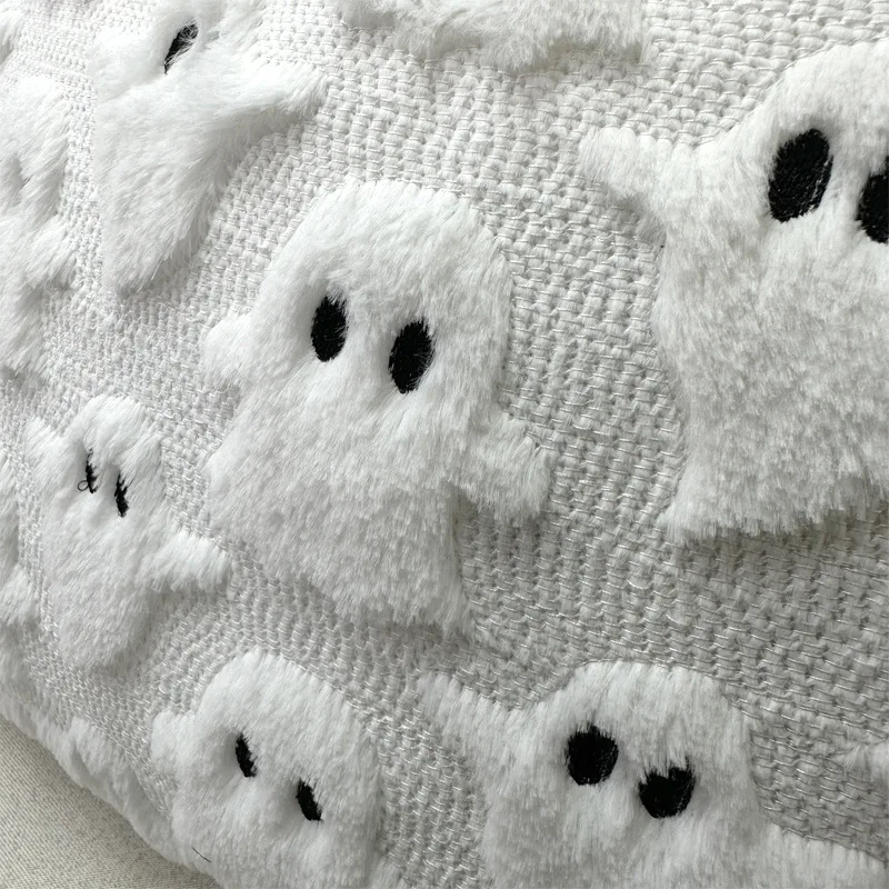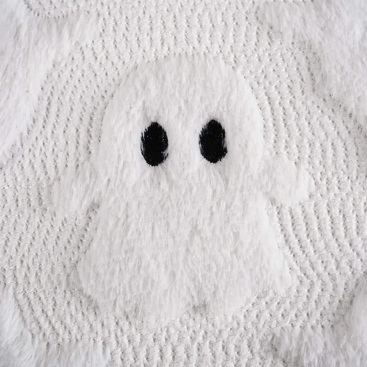 2pcs Ghost Throw Pillow Covers 45×45cm – Spooky Soft Faux Fur Décor